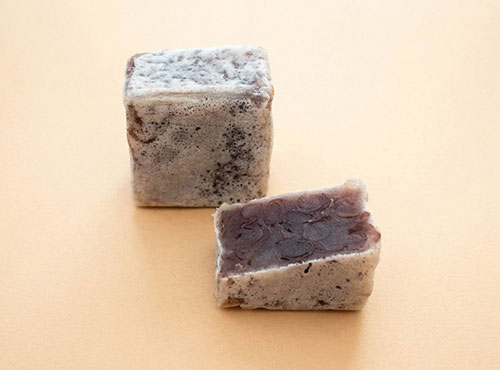 砂糖と寒天、新鮮な卵白を使い、昔ながらの製法で作った三次の銘菓です。定番の「しろ」や卵羊羹がのった「黄色」の他に、「小倉」「柚子」「抹茶」の5種類がございます。棹状ですのでお好みにカットして、お召し上がりください。